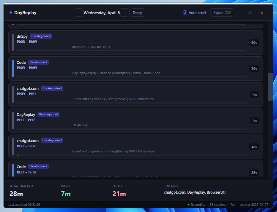 DayReplay helps freelancers and developers recover billable history from real activity data so end-of-day and end-of-week review feels clear, fast, and defensible.